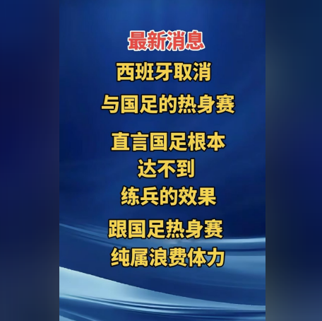 📢最新消息:西班牙足协正式取消原定于 6 月与中国男足的热身赛,理由直白到扎心!